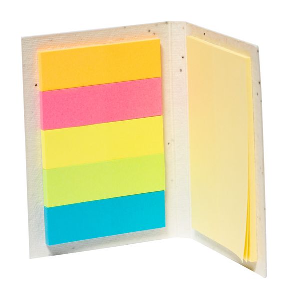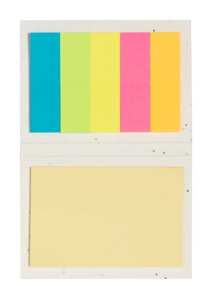 Werbeartikel Haftnotizen Semilla. Haftnotizblock mit Saatpapierumschlag mit 25 Notizen und 125 Seitenmarkern (in 5 verschiedenen Farben). Die Samenpapierhülle enthält Petuniensamen in verschiedenen Farben, die durch Trennen der Hülle vom Notizblock gepflanzt werden können. - 100% EU Druckproduktion. Gerne senden wir Ihnen auf Wunsch ein Muster des Werbeartikels.