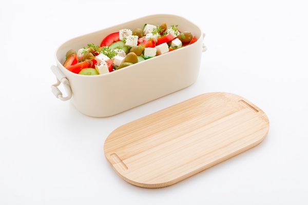 Werbeartikel Lunchbox Premium 1000 ML Fuboo. Lunchbox aus PP-Kunststoff mit Bambusdeckel und Schnallenverschluss. Füllmenge: 1000 ml. - 100% EU Druckproduktion. Gerne senden wir Ihnen auf Wunsch ein Muster des Werbeartikels.