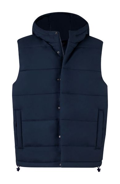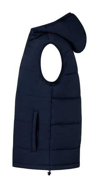 Werbeartikel Bodywarmer-Weste Brooke. Wind- und wasserabweisende, gepolsterte Bodywarmer-Weste mit doppeltem Reißverschluss und Druckknopfverschluss sowie Kapuze und Seitentaschen. Material: 100% Polyester. 100% EU Druckproduktion. Gerne senden wir Ihnen auf Wunsch ein Muster des Werbeartikels.