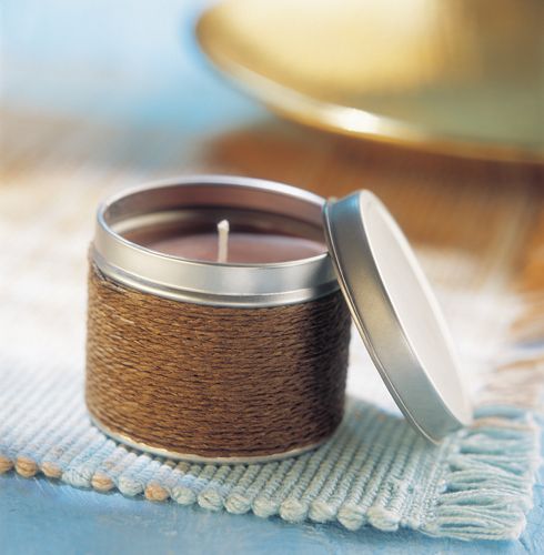 Werbeartikel Duftkerze Shiva. Duftkerze in einer Metalldose.