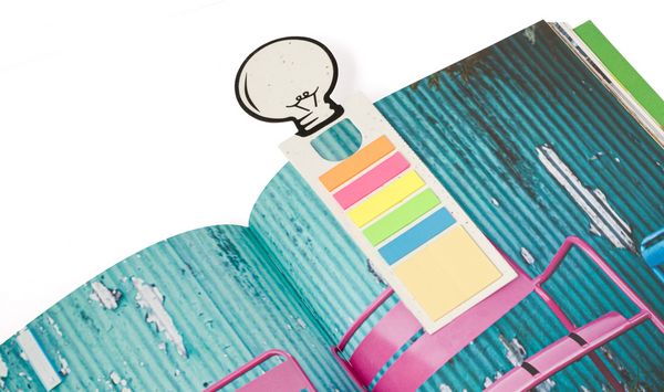 Werbeartikel Saatgut-Haftnotizen Kich. Lesezeichen aus Saatgutpapier mit 15 Haftnotizen und 75 Seitenmarkern (in 5 verschiedenen Farben). Das Saatpapier-Lesezeichen enthält Petuniensamen in verschiedenen Farben, die durch Trennen des Lesezeichens von den Haftnotizen gepflanzt werden können. - 100% EU Druckproduktion. Gerne senden wir Ihnen auf Wunsch ein Muster des Werbeartikels.