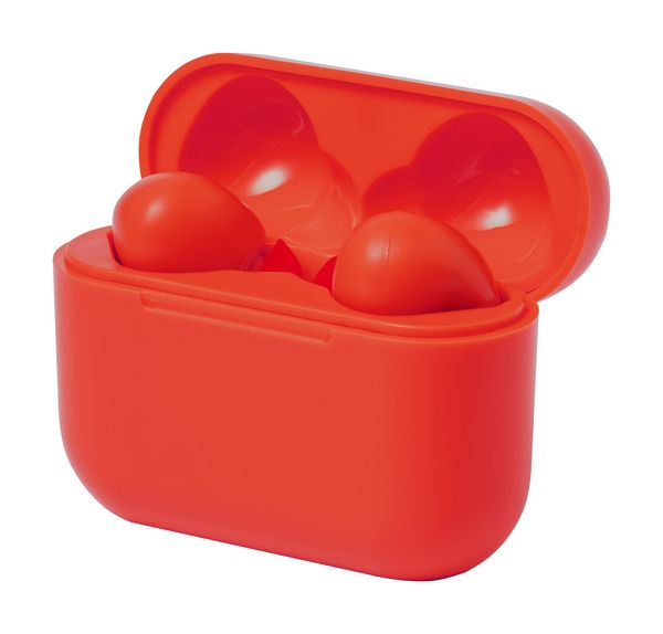Werbeartikel Bluetooth Kopfhörer Prucky. Bluetooth-Ohrhörer mit aktiver Geräuschunterdrückung und Freisprechfunktion in einer Ladeschale aus ABS-Kunststoff. Inklusive USB-Ladekabel. - 100% EU Druckproduktion. Gerne senden wir Ihnen auf Wunsch ein Muster des Werbeartikels.