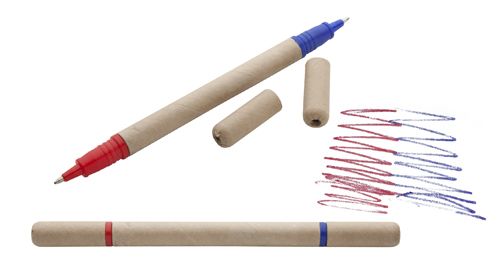 Werbeartikel Kugelschreiber Lippo. Kugelschreiber aus Recyclingpapier mit zwei Schreibseiten (blau und rotschreibend).