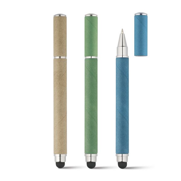 Werbeartikel Kugelschreiber Papyrus. Kugelschreiber aus Kraftpapier und ABS mit Touchpen-Funktion. Umweltfreundlicher Kugelschreiber. Erhältlich in verschiedenen Farben. Blauschreibende Mine. Ø10 x 115 mm. Blaue Schreibtinte, Umweltfreundliches Produkt, ECO Produkt, Touchspitze. Zertifikate: MSDS. - 100% EU Druckproduktion. Gerne senden wir Ihnen auf Wunsch ein Muster des Werbeartikels.