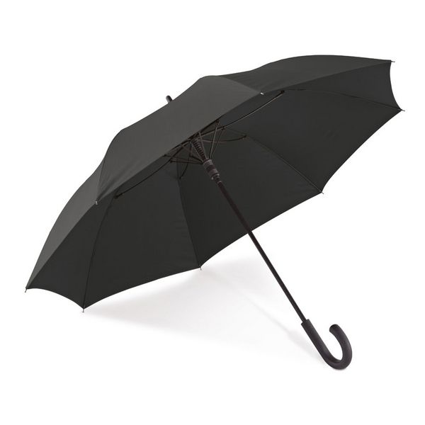 Werbeartikel Regenschirm Laveda. Automatik Regenschirm aus 190T Pongé mit Stock und Fiberglas Speichen. Dieser ist windfest und hat einen gummierten Griff. Ø1030 x 890 mm. Regenschirm mit Faserst, Automatische Öffnung. Verpackungsinfo: Polybeutel, Griff in Luftpolsterfolie. - 100% EU Druckproduktion. Gerne senden wir Ihnen auf Wunsch ein Muster des Werbeartikels.