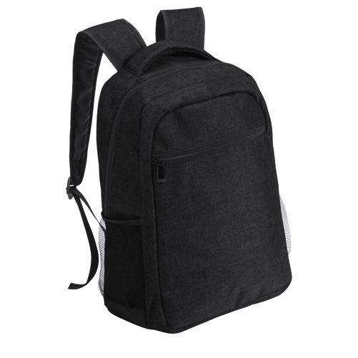 Werbeartikel Rucksack Verbel. Rucksack mit Reißverschlussfächern, verstellbaren Schultergurten, gepolsterter Rückenpartie und Laptopfach (15"). Material: 600D Polyester.