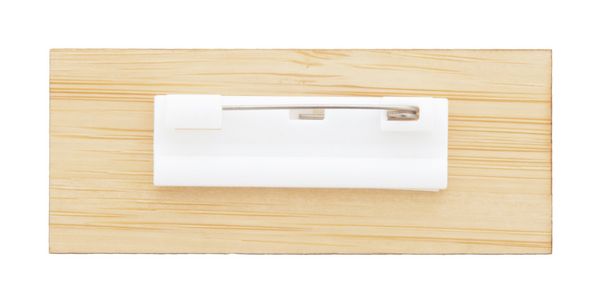 Werbeartikel Namensschild Namoo. Namensschild aus Bambus mit Sicherheitsnadel. - 100% EU Druckproduktion. Gerne senden wir Ihnen auf Wunsch ein Muster des Werbeartikels.