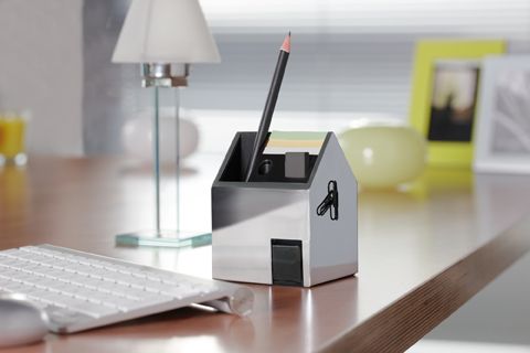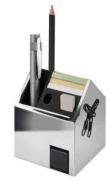 Werbeartikel Schreibtisch-Set Vincennes. Schreibtisch-Set, Magnethalterung, silberglänzend, Metall, hochwertige Reflects Geschenkverpackung. Inkl. Radiergummi, Anspitzer, Notizzetteln, Klebestreifenabroller und Bleistift.