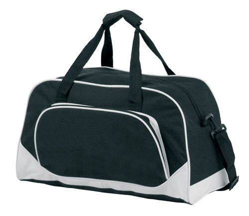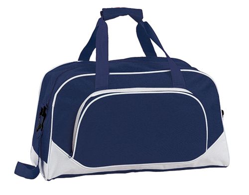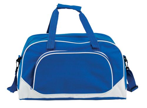 Werbeartikel Sporttasche Novo. Sporttasche mit zusätzlichem Reißverschluss-Vorfach, verstellbarem Schultergurt und Griffe mit Klettverschluss, Material: 600D Polyester.