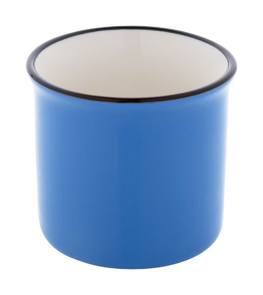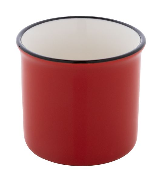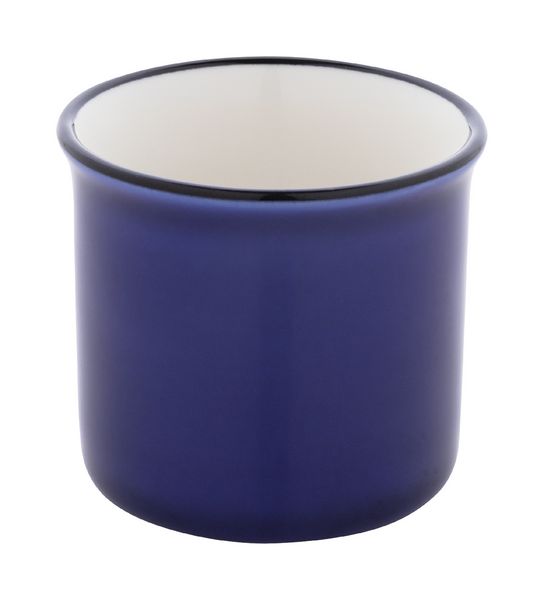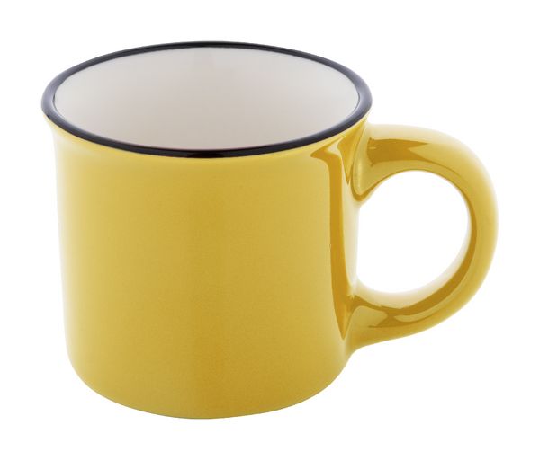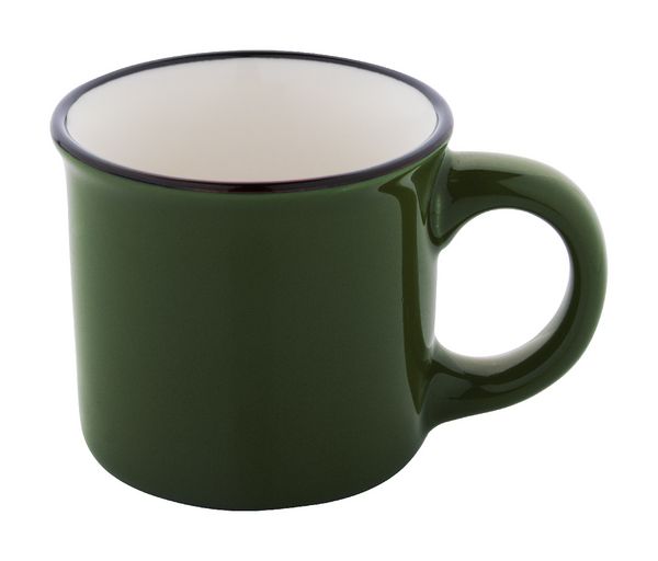 Werbeartikel Espressotasse Vintage 90 ml Woodstock Mini. Mini-Vintage-Keramikbecher mit schwarzem Rand, innen weiß und außen farbig. Füllmenge: 90 ml. Einzeln in Kraftpapierbox. - 100% EU Druckproduktion. Gerne senden wir Ihnen auf Wunsch ein Muster des Werbeartikels.