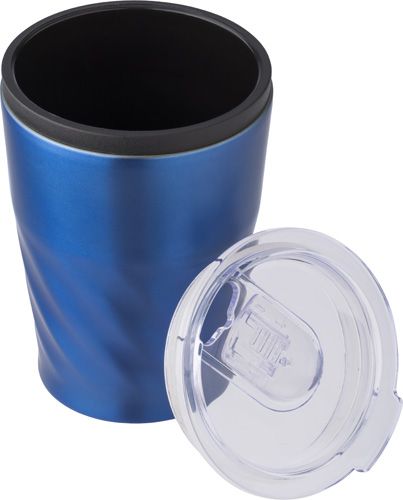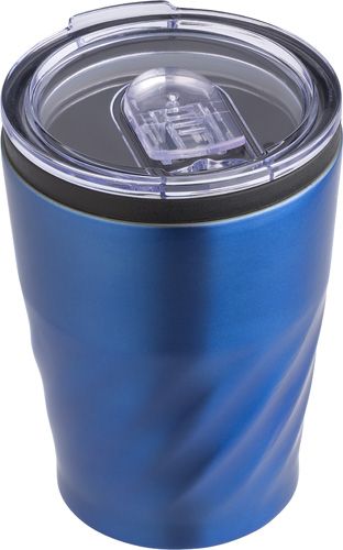 Werbeartikel Kaffeebecher Curly. Thermobecher aus Edelstahl und Kunststoff, doppelwandig, mit Kunststoffdeckel und Kunststoffinnenwand. - 100% EU Druckproduktion. Gerne senden wir Ihnen auf Wunsch ein Muster des Werbeartikels.