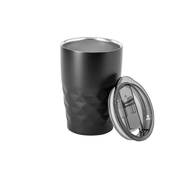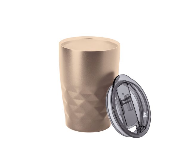 Werbeartikel Kupferisolierter Trinkbecher Cupper. Doppelwandiger, vakuumisolierter Thermobecher aus Edelstahl und Kupfer mit Trinkdeckel aus Kunststoff. Füllmenge: 350 ml. Die Kupferisolierung hält Getränke ca. 12 Stunden lang heiß und ca. 24 Stunden lang kühl. - 100% EU Druckproduktion. Gerne senden wir Ihnen auf Wunsch ein Muster des Werbeartikels.