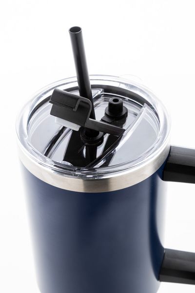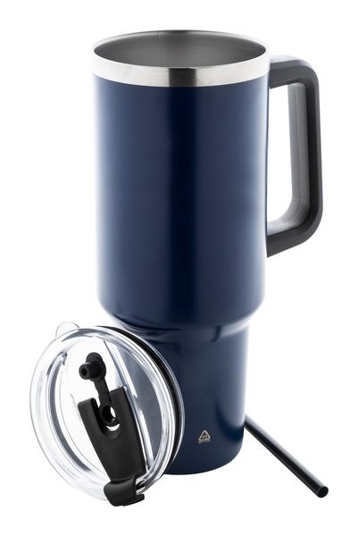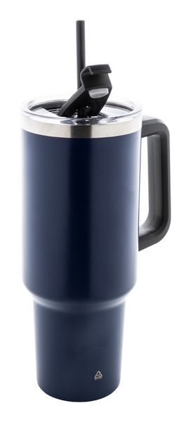 Werbeartikel Thermobecher Massimus. Doppelwandiger, vakuumisolierter Thermobecher aus recyceltem Edelstahl mit PS-Trinkdeckel und PP-Strohhalm. Füllmenge: 1200 ml. - 100% EU Druckproduktion. Gerne senden wir Ihnen auf Wunsch ein Muster des Werbeartikels.