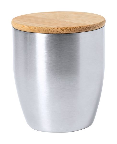Werbeartikel Thermobecher Zasel. Doppelwandiger Thermobecher aus Edelstahl mit Bambusdeckel, Füllmenge: 280 ml.